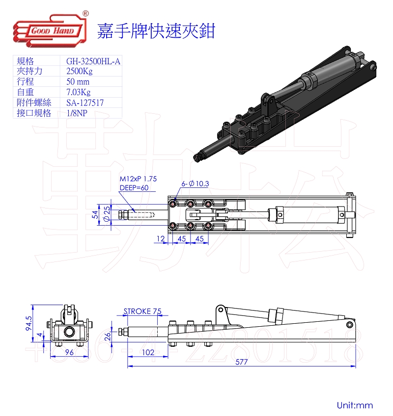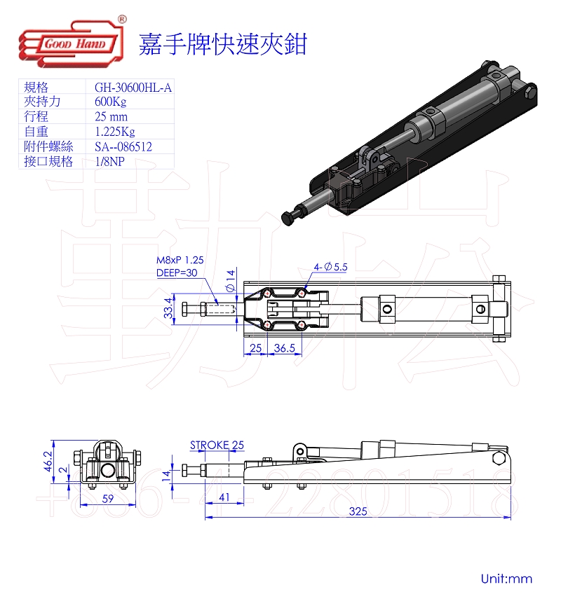 嘉手牌快速夾鉗 GH-30600-HLA(氣動式夾具)