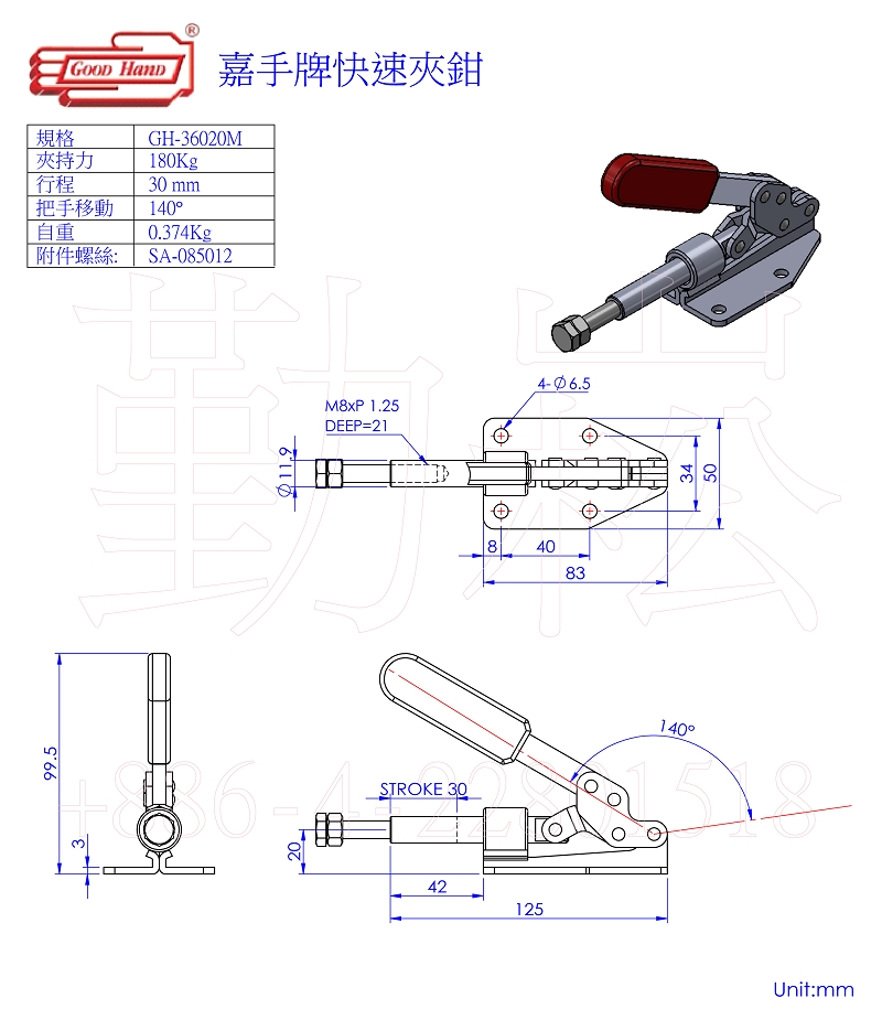 夾持力:180kg.