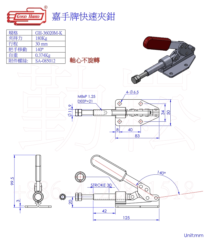 備註:GH-36020-K(軸心不旋轉)