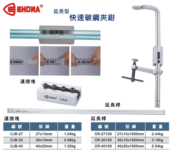 EHOMA愛赫瑪夾鉗:當長度不足時可另購安裝連接塊、延長桿(每支長度1000mm),視型鋼選購。安裝方式如圖。‧台灣製造、品質保證‧