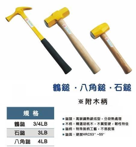 鶴鎚3/4磅、石鎚3磅、八角鎚4磅