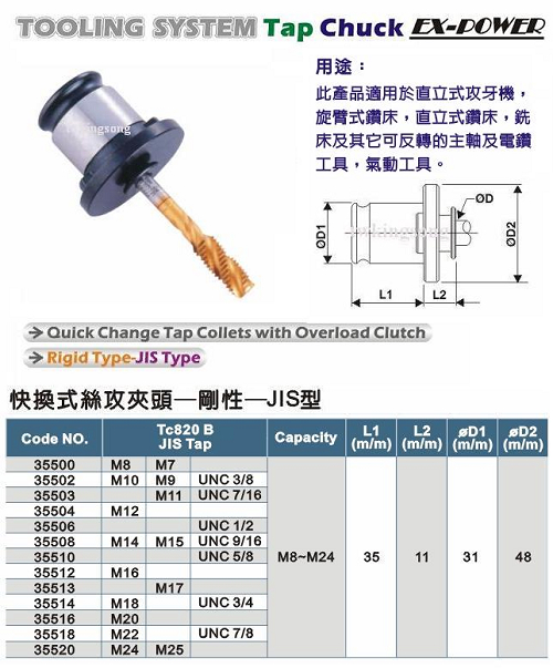 適用於直立式攻牙機、旋臂式鑽床、直立式鑽床、铣床及其他可反轉的主軸及電鑽工具、氣動工具。