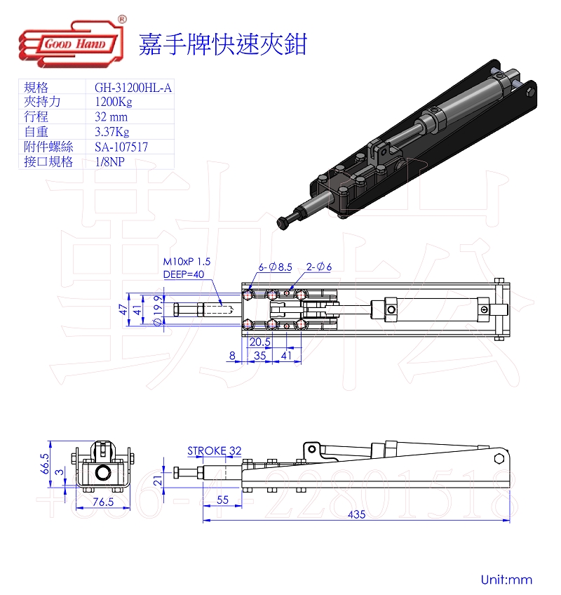 嘉手牌快速夾鉗 GH-30600-HLA(氣動式夾具)