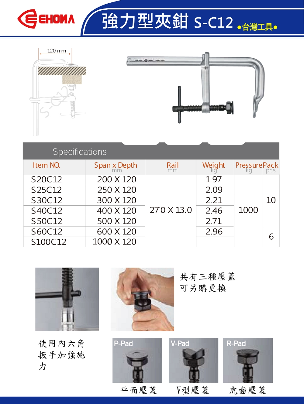 本系列使用於鐵工、鋼構、焊接、鑄造、機械等,特別需要強力夾鉗施力之行業。
