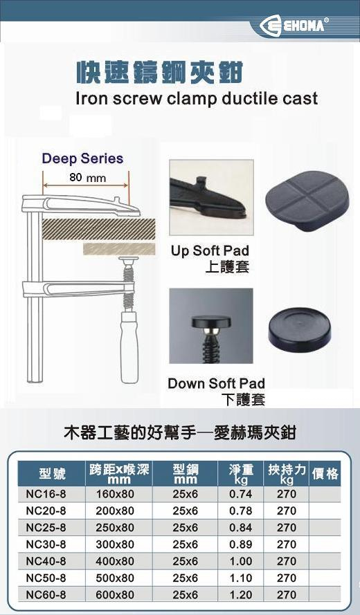 F型快速鑄鋼夾鉗NC系列喉深80m/m