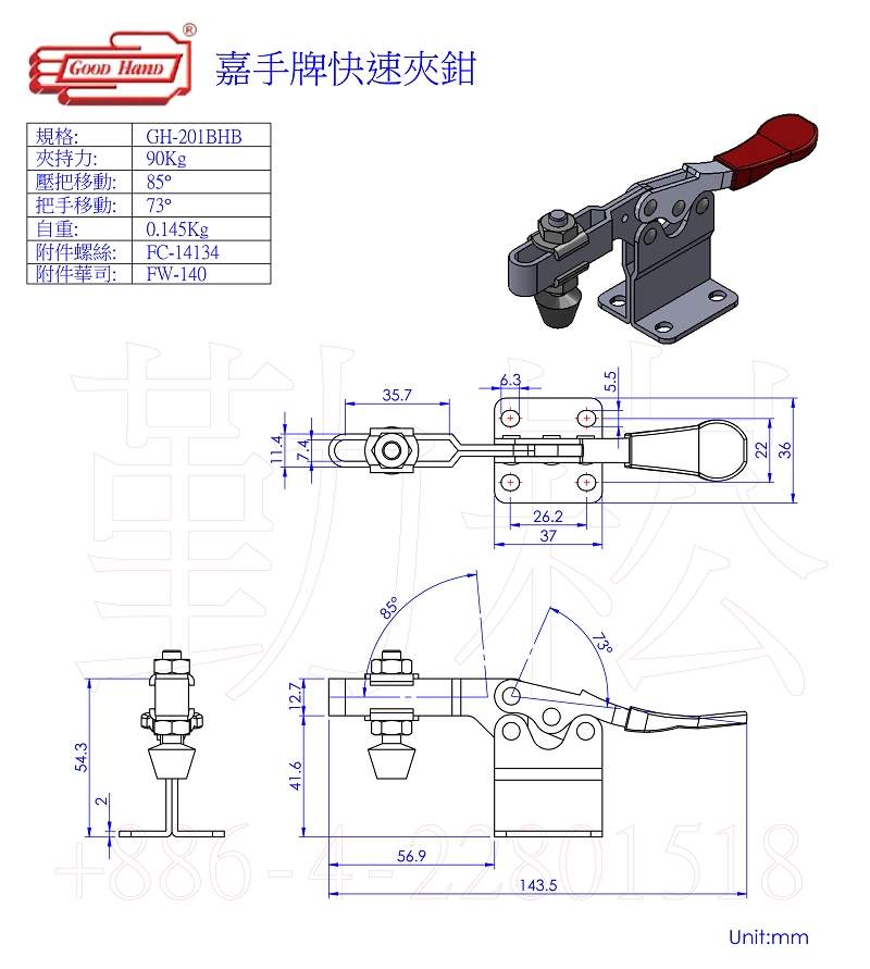 嘉手牌快速肘節夾鉗GH-201-BHB
