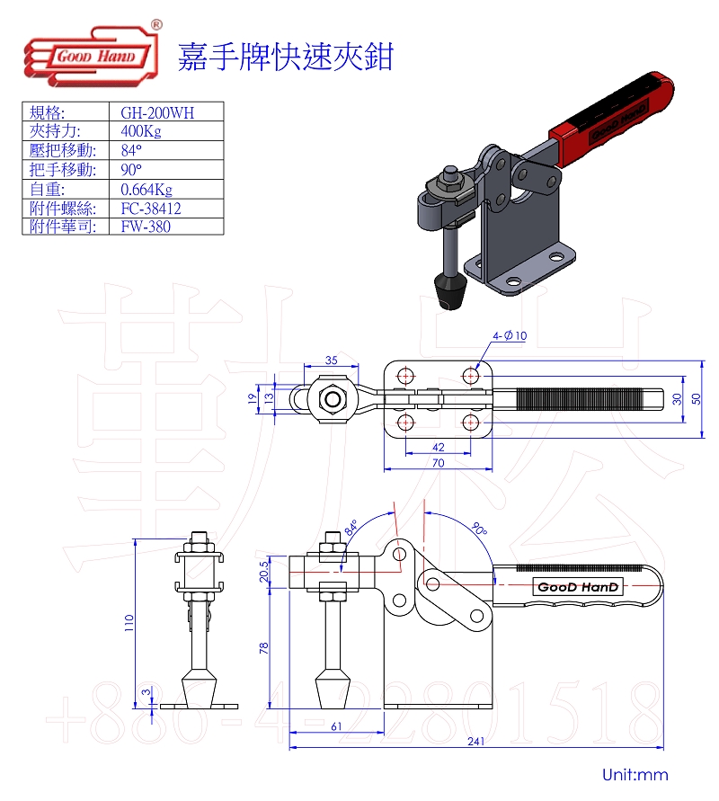 嘉手牌快速肘節夾鉗GH-200WH
