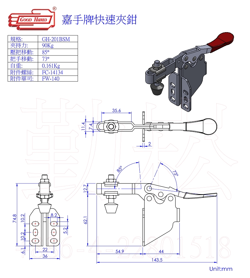 嘉手牌快速肘節夾鉗GH-201-BSM
