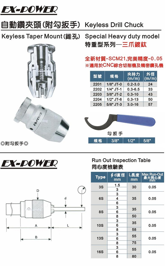 EX-POWER 自動鑽夾頭(附勾扳手)