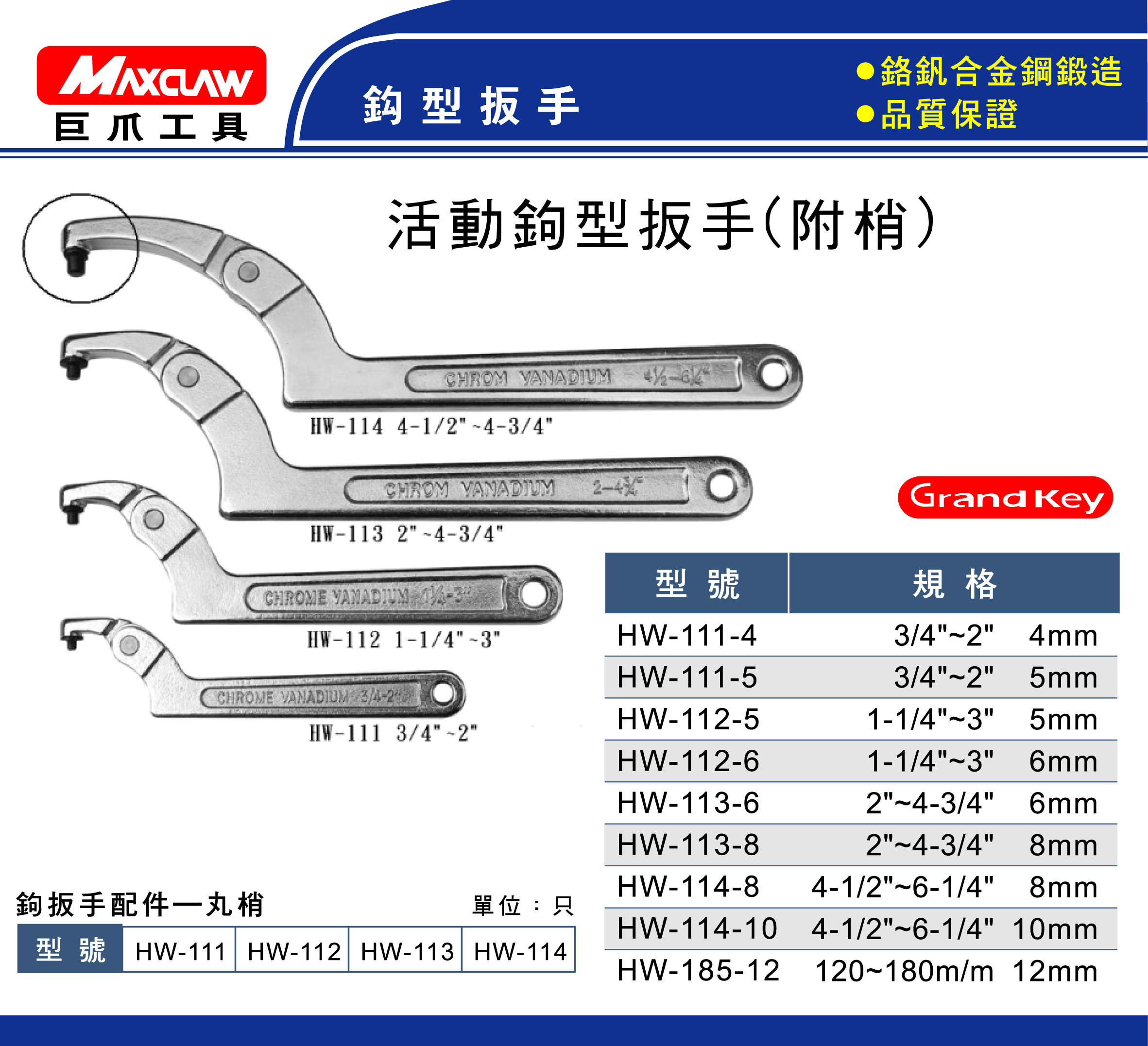 Grand Key 活動鉤型扳手(附梢)