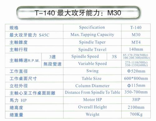 導螺桿傳動自動進刀攻牙機T-140