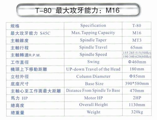 齒輪傳動自動進刀攻牙機T-80
